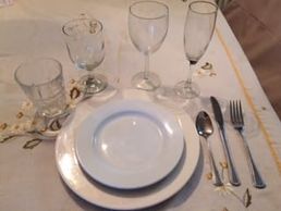 DINNER SET: Dinner plate, Desert Plate,Fork,Spoon,Knife,Water